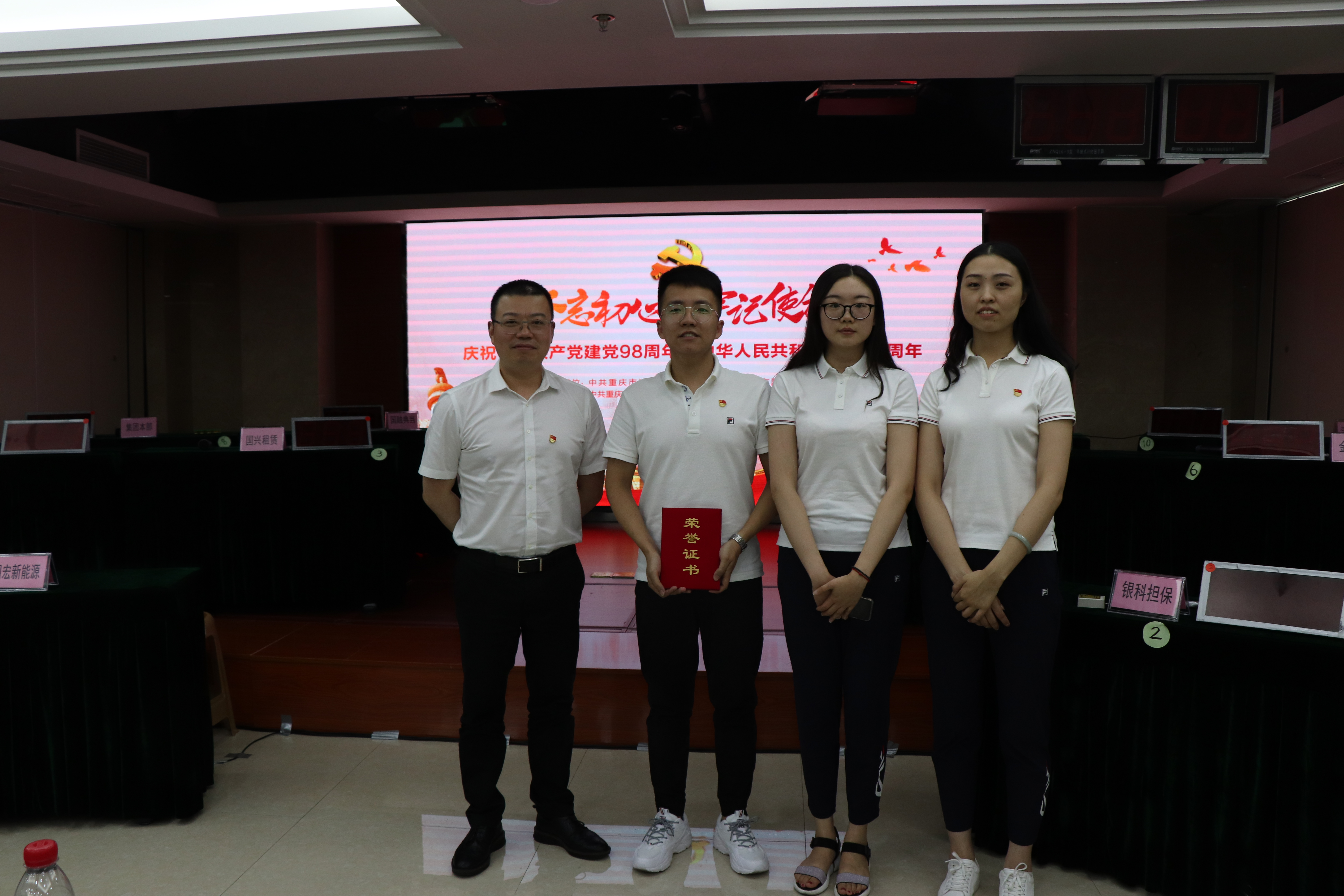 为庆祝中国共产党建党98周年暨中华人民共和国成立70周年,7月2日下午,公司党支部承办并参加了国投集团党委组织的“七.一”党建知识竞赛,钟俨郦、刘萍、赵紫璇三位同志代表公司党支部在竞赛中表现优异,勇夺团体二等奖。