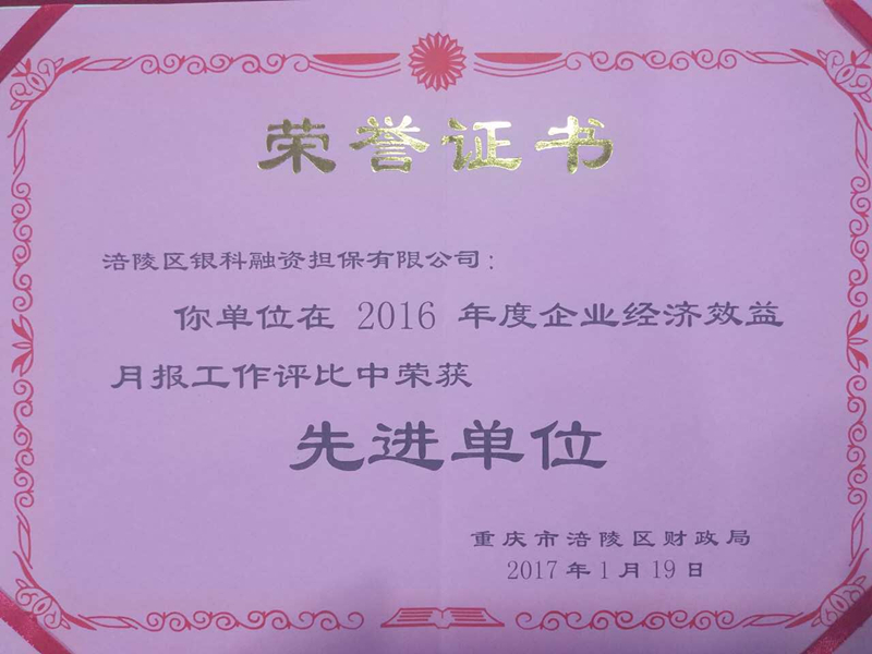 BETWAY必威被重庆市涪陵区财政局评为2016年度财务快报工作先进单位。