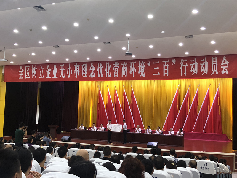 2018年8月9日下午,BETWAY必威参加了由涪陵区委办公室、区政府办公室共同组织召开的全区树立企业无小事理念优化营商环境“三百”行动动员部署大会。会上,区委书记周少政、区长种及灵做了重要讲话。