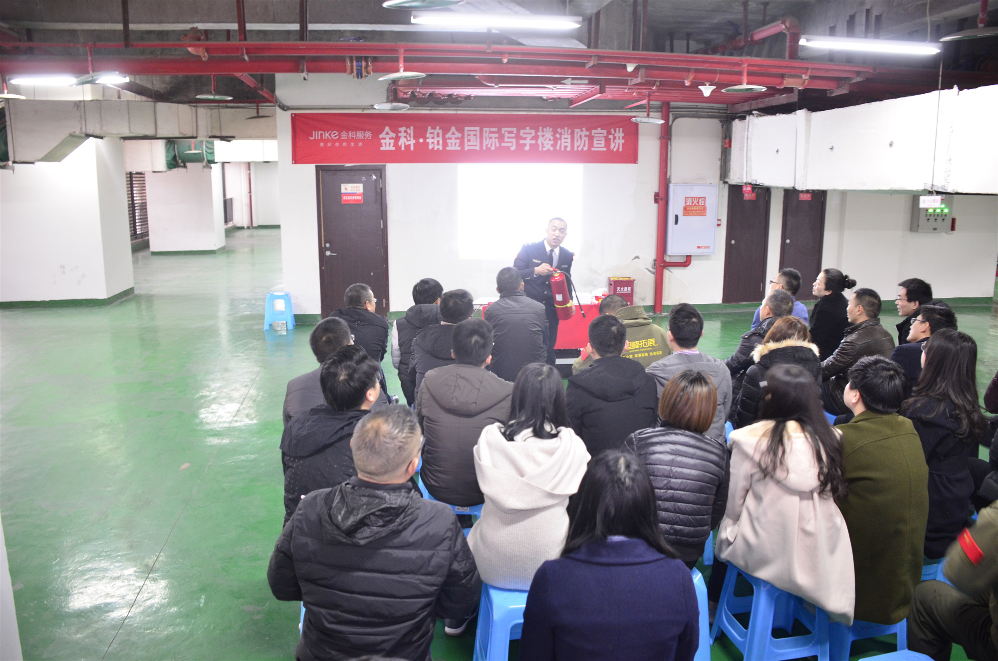 2019年2月28日,公司员工在金科铂金国际写字楼办公区域参加了由金科物业公司举办的高层写字楼消防安全知识现场宣讲活动。通过理论学习和实际操作,员工详细了解了高层建筑火灾隐患风险点及逃生技巧,学会了如何正确使用灭火器、防毒面具等消防器具,增强了安全责任意识,提升了应急自救能力。