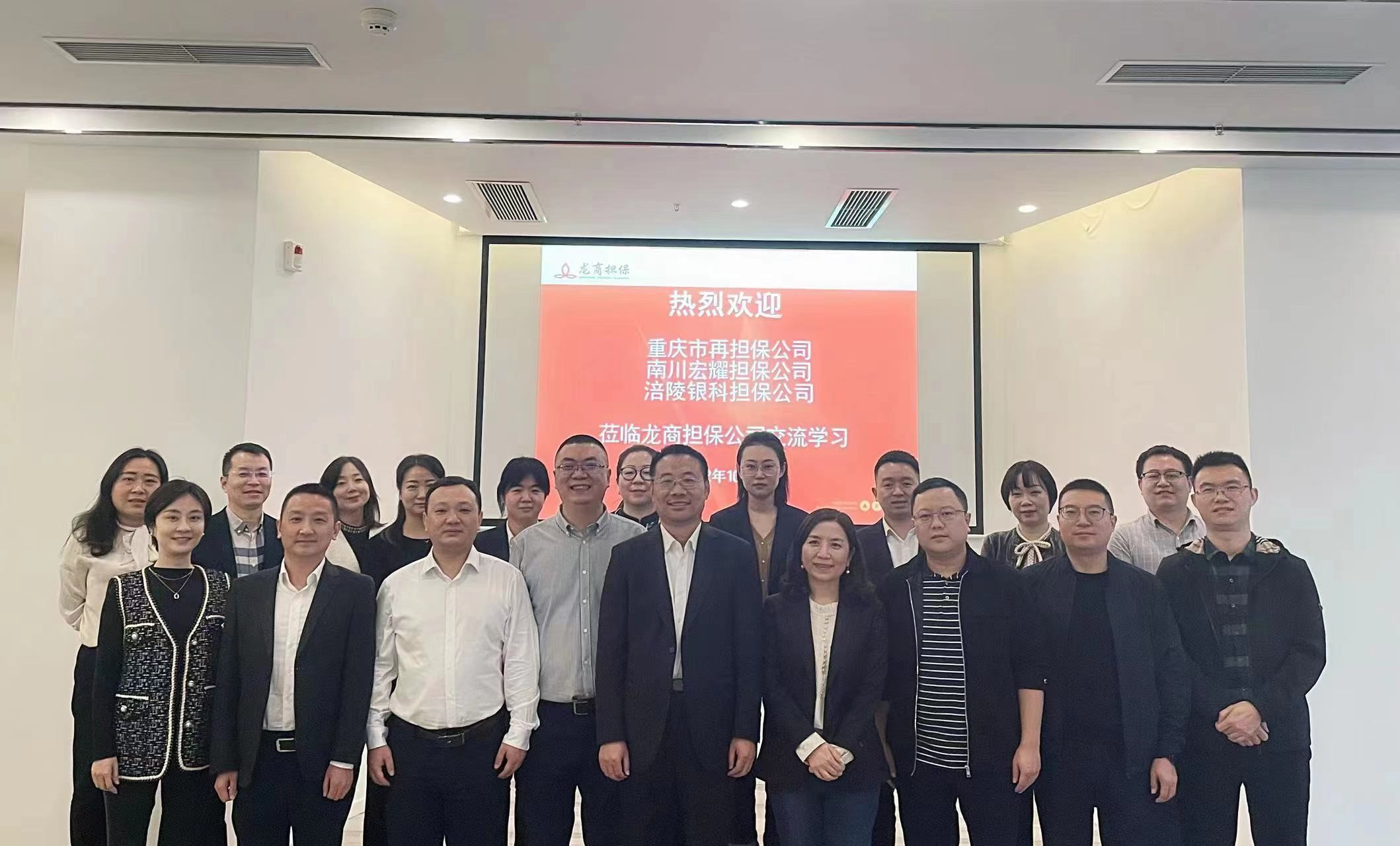 2022年10月31日下午,公司总经理付习桓带队前往重庆龙商担保公司,与重庆再担保公司、重庆龙商担保公司、南川宏耀担保公司进行了业务交流。参会代表就如何在当前经济形势下更好地助力市场主体纾困发展,发挥政府性融资担保作用等一系列问题展开了探讨。